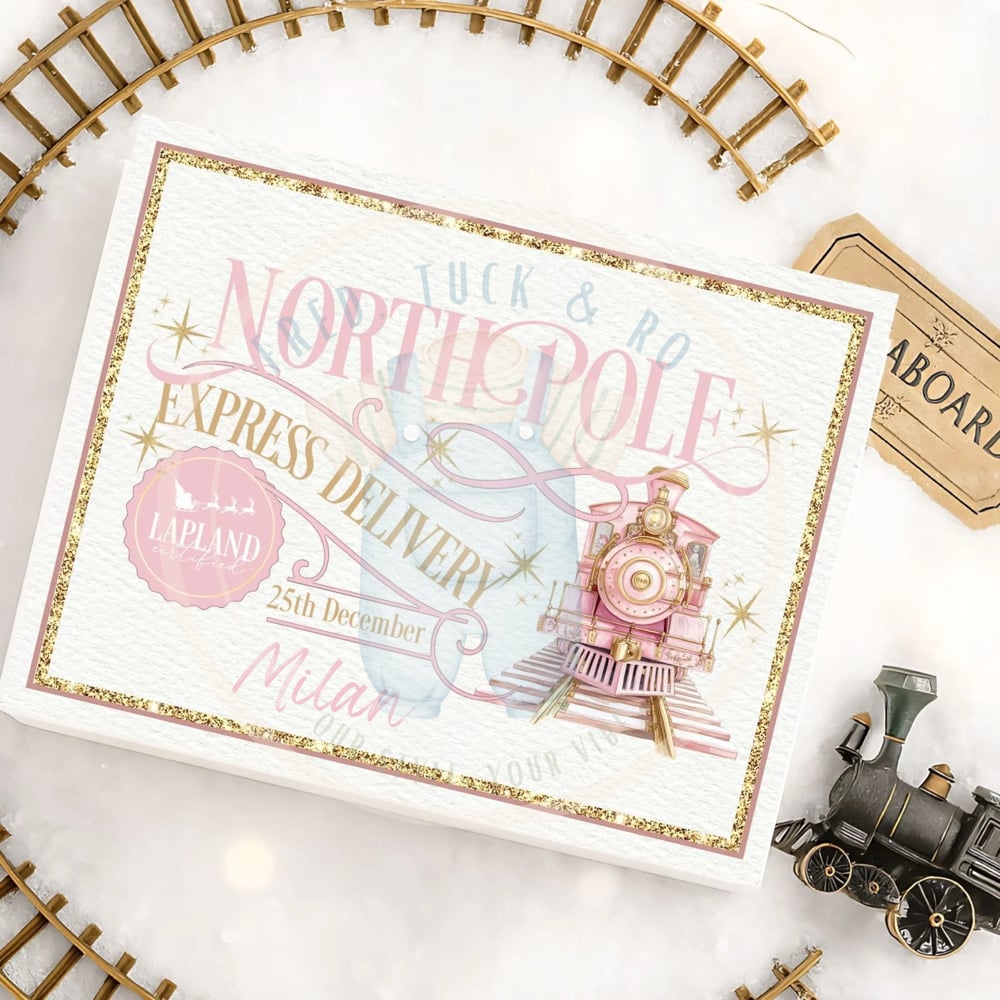 Make Christmas morning truly magical with our North Pole Express Delivery magnetic gift box — perfect for presenting that extra-special surprise from Santa himself! Beautifully designed with festive gold and pink detailing, a classic steam train illustration, and glittering accents, this sturdy gift box brings the spirit of Lapland right to your doorstep.